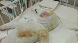 Йәш ярымлыҡ бала эҫе һыуға бешкән